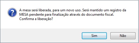 Esta opção permitirá liberar imediatamente a mesa/comanda, sem a necessidade de emissão de documento fiscal para libera-la.