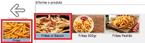 No exemplo abaixo iremos demonstrar como efetuar a venda de uma porção de Fritas com Bacon; para lançar, clique no favorito Fritas e em seguida, clique no sub-favorito fritas com bacon.
