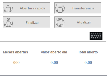 Além disso é possível visualizar o total de Mesas Abertas, Valor Aberto no dia e Total aberto.