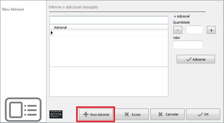 IO adicional não será cadastrado com um produto no estoque e nem terá movimentação de quantidade. O Valor não é obrigatório, porém, se informado será considerado como um acréscimo.