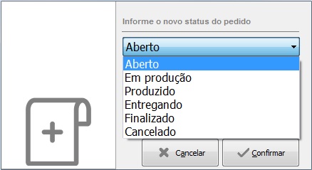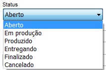 Após gravar o pedido, poderá alterar o status do mesmo.