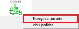 Quando um entregador estiver Ausente, ou seja, fora do serviço, é possível anula-lo na tela. Basta clicar com o botão direito e em seguida clique na opção Entregador Ausente.
