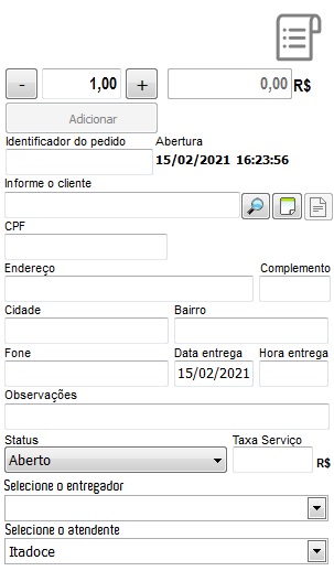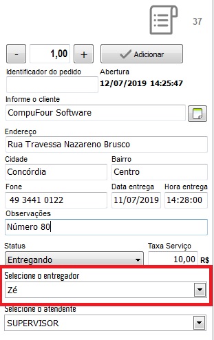 Será possível lançar o pedido e ao lado do campo de entregador, efetuar o cadastro do mesmo, caso não tenha sido efetuado