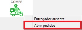É possível atribuir o pedido ao entregador diretamente por essa tela, clique com o botão direito sobre o mesmo e em seguida clique na opção Abrir Pedidos.