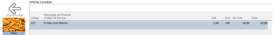 Em seguida, informe o produto correspondente no estoque, valor, quantidade e grave os dados.