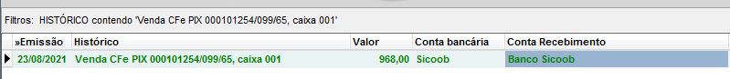 O registro da venda poderá ser conferido na movimentação do banco, acessando o módulo de Bancos - Arquivo - Movimento desta conta;