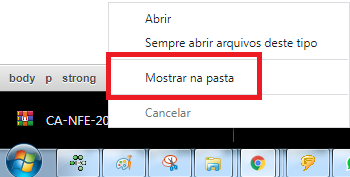Escolha um local para salvar o arquivo, após isso, clique com o botão direito no download e vá na opção - Mostrar na pasta;