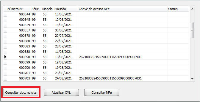 Por último, clique sobre a nota na ferramenta e em seguida clique em Consultar NFe;