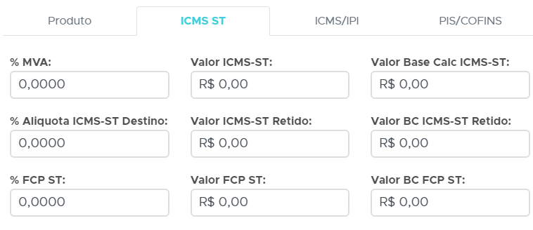 Ainda no lançamento do item, após adicionar você pode clicar no botão e terá a possibilidade de informar manutalmente os dados de Substituição Tributária e demais impostos, separados na guia ICMS ST e IMPOSTOS: