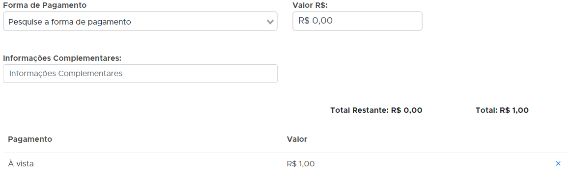 Aqui será possível definir o faturamento da nota, após escolher clique no botão Adicionar;
