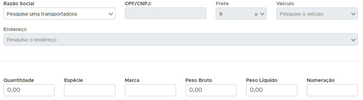 Aqui será possível incluir a transportadora da mercadoria, também é possível informar os dados do volume transportado;