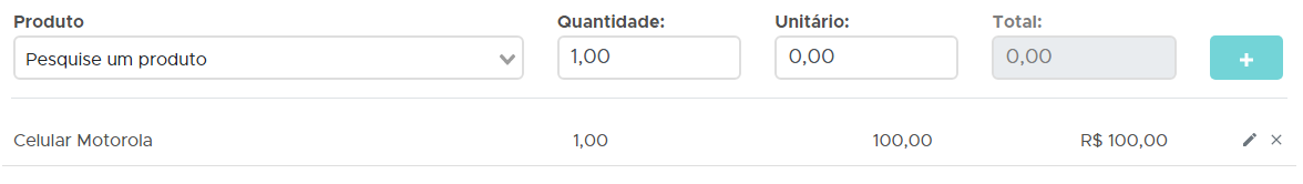 Após escolher o item, quantidade e valor unitário, clique no botão