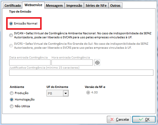 O ambiente selecionado está diferente do utilizado na nota eletrônica transmitida anteriormente.