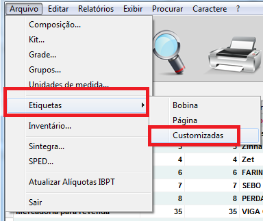 O processo de configuração é feito diretamente na etiqueta customizada, para configurar, acesse arquivo - etiquetas - customizadas;
