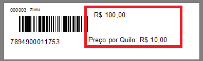 Na etiqueta gerada vai constar o valor do item por unidade de medida.