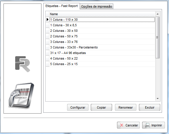 Escolha a etiqueta com a dimensão que necessita e clique em Configurar;