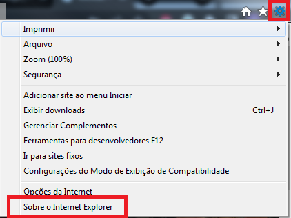 Se persistir, verifique se o internet explorer está atualizado, clicando em configurações - sobre o internet explorer;