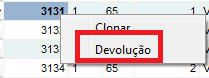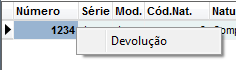 e localize a nota que pretende devolver, em seguida, clique com o botão direito na mesma e clique na opção Devolução.