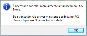 ATENÇÃO! Caso cancele a operação pelo sistema, terá que cancelar também na maquininha.