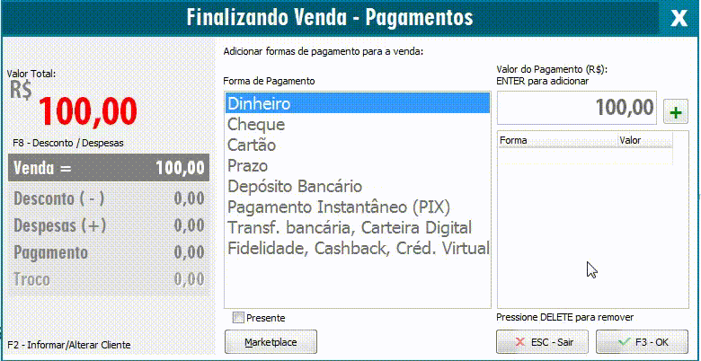 OBS: Caso o cliente comprou um produto, pagou a vista, a prazo, no cartão ou com qualquer outra forma de pagamento que NÃO seja com crédito e fez uma devolução parcial: Ao finalizar a nota também será aberta uma tela pedindo se quer deixar o crédito, IMPORTANTE que nessa parte só será gerado o crédito do valor que já foi pago, e caso quiser devolver a outra parte o restante do valor OBRIGATORIAMENTE será convertido em créditos.
