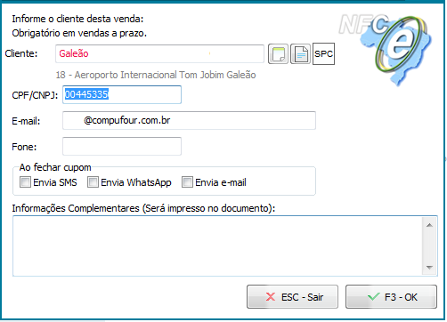 Atenção! Caso for devolver uma NFC-e, só irá constatar crédito na devolução se for informado CLIENTE na NFC-e.