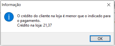 ATENÇÃO! O valor do crédito é intransferível, ou seja, não é possível transferi-lo para outro cliente no sistema.