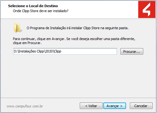 Escolha o local de destino para instalação do sistema, mesmo local onde possui a versão anterior do sistema instalada e clique em Avançar.