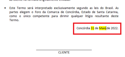 Ao final do termo, preencha o dia e mês em que foi assinado.