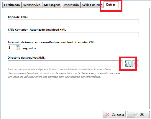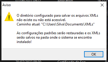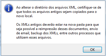 IMPORTANTE! Ao alterar o local de gravação dos XMLs você terá que copiar os arquivos XML antigos para essa nova pasta! Caso não copie, ocorrerá erro ao imprimir, visualizar ou realizar a cópia dos XMLs.