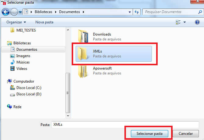 Clique na pasta em questão e clique em Selecionar Pasta;