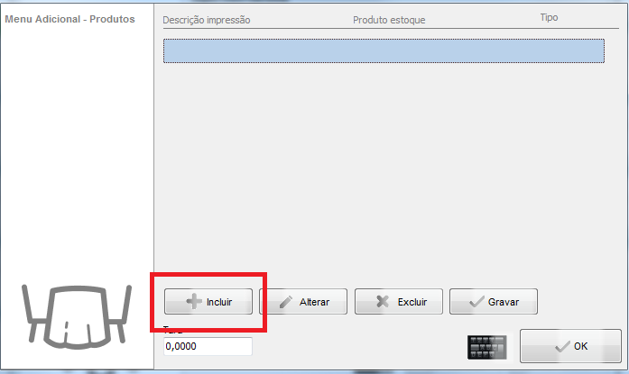 • Tara: Determine o valor da Tara, ou seja, o valor do prato sem produtos;