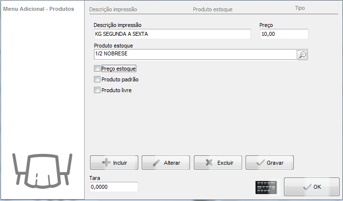 • Produto livre: Ao marcar, se o valor do KG ultrapassar o valor do prato "livre", será fixado o valor Livre;