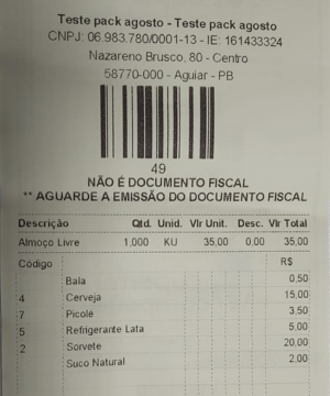 • Produto estoque: Defina um item préviamente cadastrado no estoque, que pode ser por exemplo: Almoço KG;