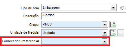 Incluir Fornecedor Preferencial - Será incluso o fornecedor principal, cadastrável no próprio item: