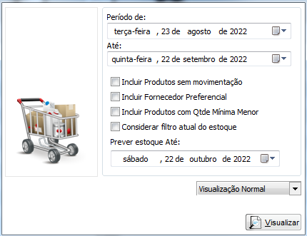 Prever estoque até - Escolha até qual data deseja que o sistema preveja a compra;