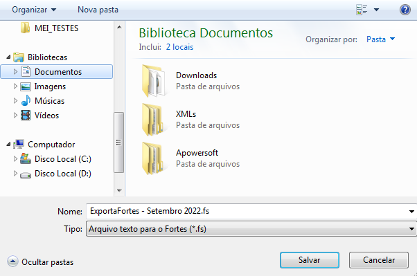 O arquivo será gerado em formato .fsescolha a pasta que deseja salvar o arquivo e clique em Salvar, a partir daí é só importar o arquivo para o sistema Fortes!