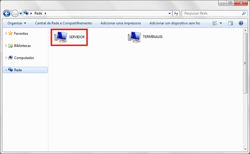 Após efetuar a instalação do sistema, acesse os Meus Locais de Rede ou a opção Rede e na janela que for aberta localize o computador Servidor.