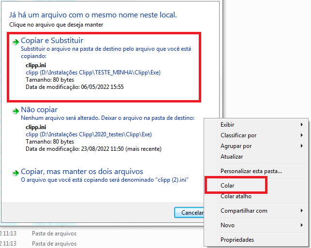 Clique com o botão direito em algum local vazio e clique em Colar, caso peça para substituir, poderá confirmar.