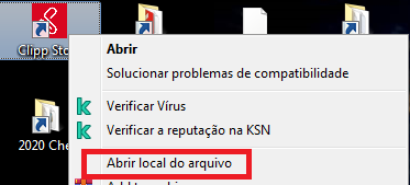 Agora, feche todas as pastas e localize o ícone do ClippStore em sua área de trabalho, clique com o botão direito nele e em seguida Abrir Local do Arquivo;