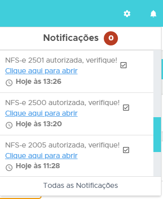 Após finalizar a nota, acompanhe o ícone de notificação será apresentada a notificação que a nota foi (ou não) emitida;