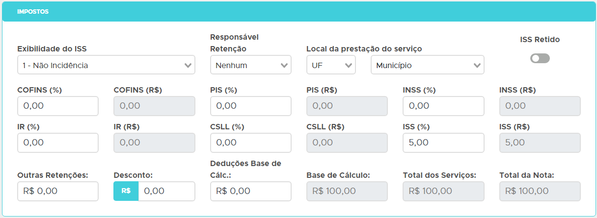 Incidência - Informe a quem se aplica essa emissão (normalmente Tomador);