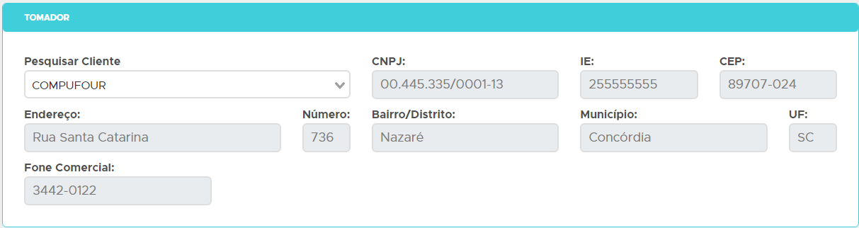 Aqui deverá indicar o tomador (cliente) da NFS-e;