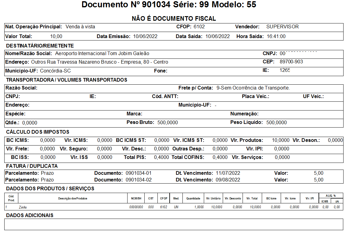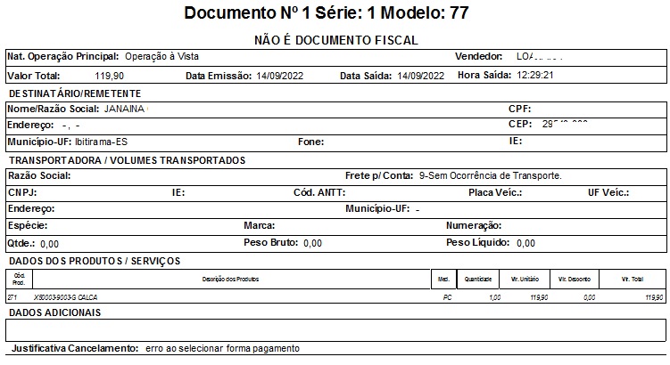 OBS: Caso for referente a um documento cancelado, será impressa a justificativa do cancelamento (somente para o MEI e MEICPF)