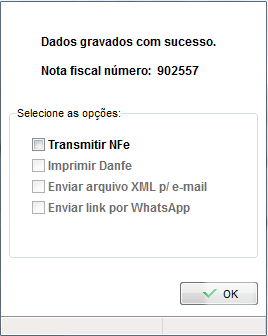 Após finalizar a nota, clique sobre ela e pressione a tecla F4, será carregada a tela para seleção das opções;