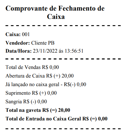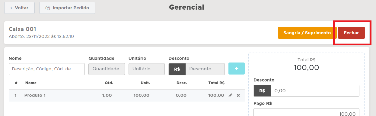 Para fechar o caixa, clique em Fechar;