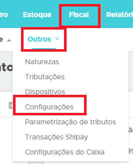 Primeiramente é necessário efetuar a configuração, para isso, acesse Fiscal - Outros - Configurações;