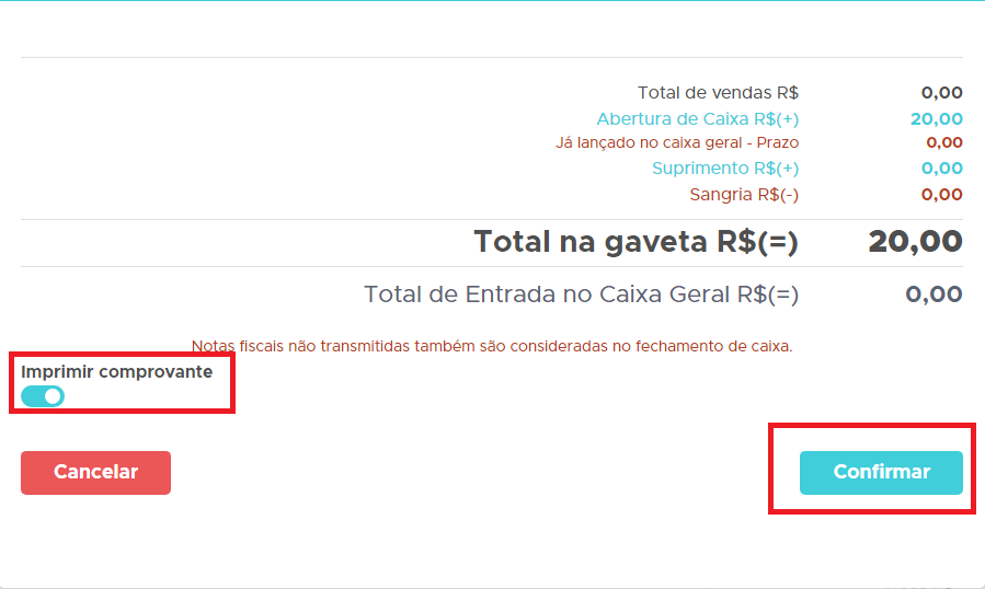 Ao fechar o caixa da NFCe/SAT os documentos gerenciais NÃO serão somados ao fechamento!