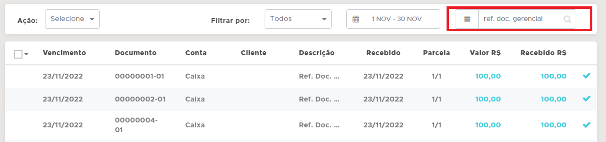 Imediatamente após a emissão do documento gerencial, será gerada a movimentação, no Financeiro - Receitas;