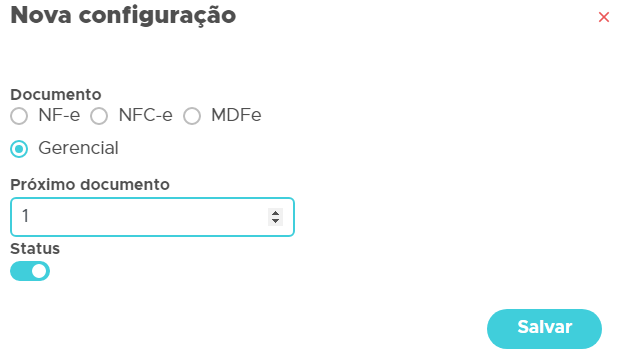 Na nova configuração, escolha a opção Gerencial e defina o próximo número de documento a ser emitido;
