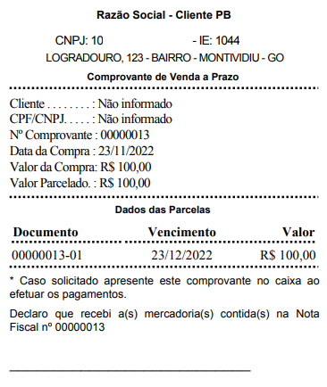 Caso for emitida a prazo, será gerado também o comprovante a prazo;